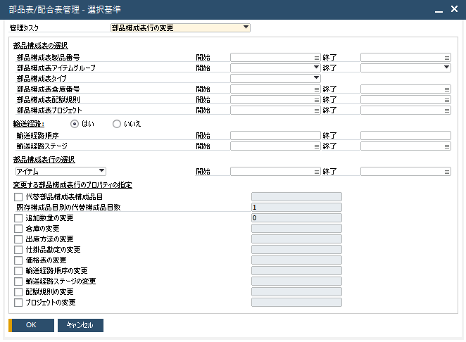 部品構成表を編集したい場合は、部品表/配合表管理の機能を使用することで、条件に合致する行の変更、新しい行の追加などを一括して行うことができます。