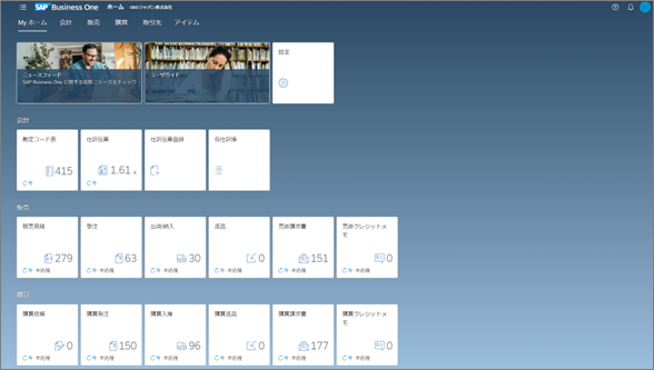 また、ホーム画面はユーザごとにパーソナライズ することができます。タイルの表示内容をユーザの役割や業務内容に合わせて設定できるため、営業担当者、管理部門など、それぞれに最適な画面構成を実現できます。