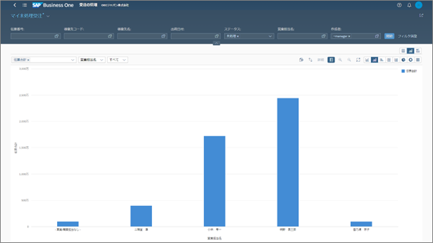 1. 最後に、営業担当別などの必要な条件を指定するだけで、瞬時にグラフが作成可能
